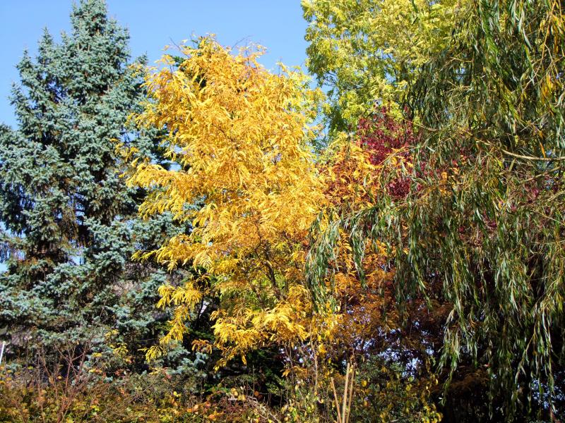 In einer Gartenecke fiel heute Gleditsia 'Sunburst' auf.
