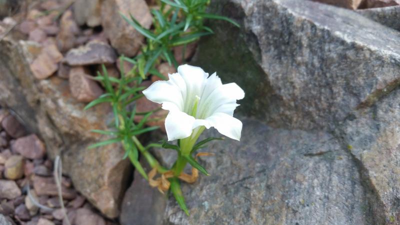 Gentiana sino - ornata "weißer Traum " Leider nur eine Blüte, aber immerhin ein Lebenszeichen.