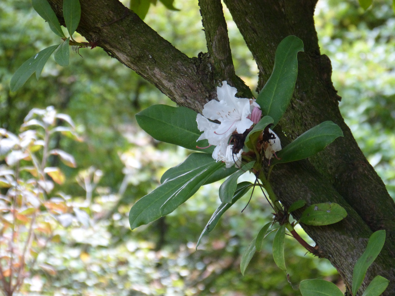Gesäumt von üppigen Fuchsien. Im Hintergrund eine imposante Hängeform des Schnurbaums.