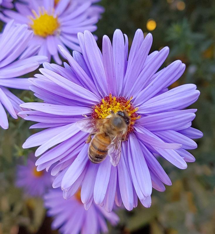Schön bei dir Mata Haari, den Bienen gefällts auch. ;) Das blaue Asternrund ist auch so ein Hingucker.