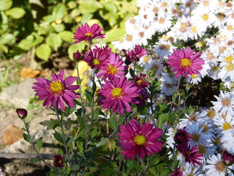 Ich kann im Herbst regelmäßig den Topfchrysanthemen nicht widerstehen. Wenn sie verblüht sind, stelle ich sie einfach an die Hauswand unter den Dachüberstand. Was den Winter übersteht, wird im Frühjahr wieder in einen Kübel gepflanzt.
