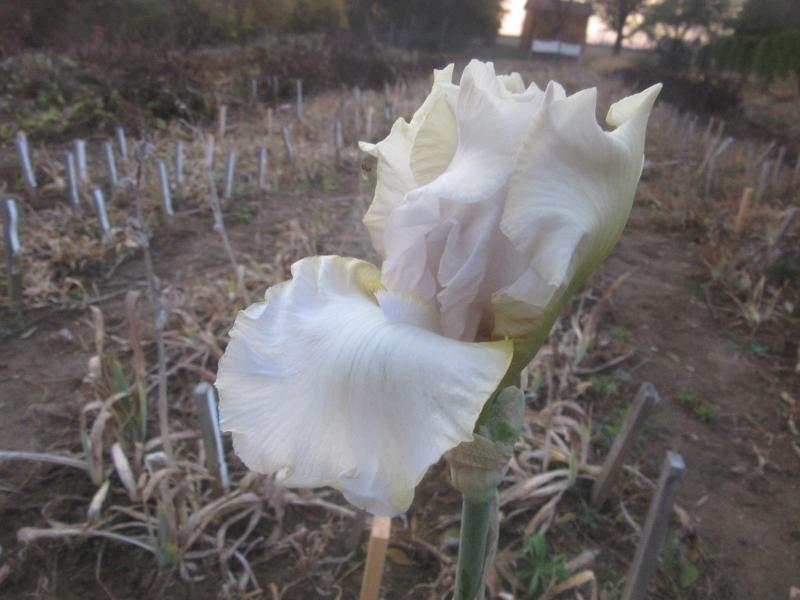 Eine weitere Weiße, ohne Namen, hat es heute noch geschafft. Allerdings war es ihr ganz sichtbar schon mal zu kalt, im Oktober ging es ein paar Nächte an die Frostgrenze und leicht drunter, das hat sie verschnupft. Der einen Sorte macht das anscheinend nichts aus, der anderen dafür dann doch.