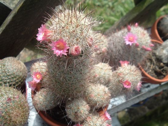 In dieser Gruppe gibt's Blüten auch in Pink - was gut gegen das dunkle Abwehrkleid dieser Form kontrastiert!