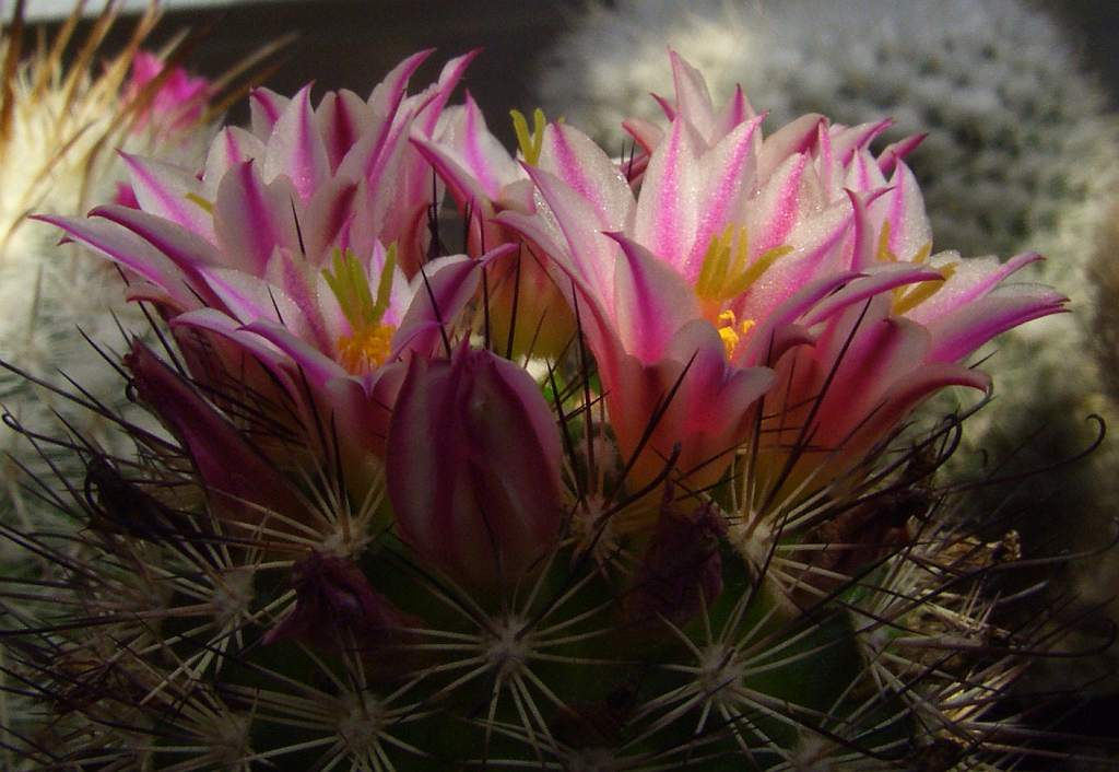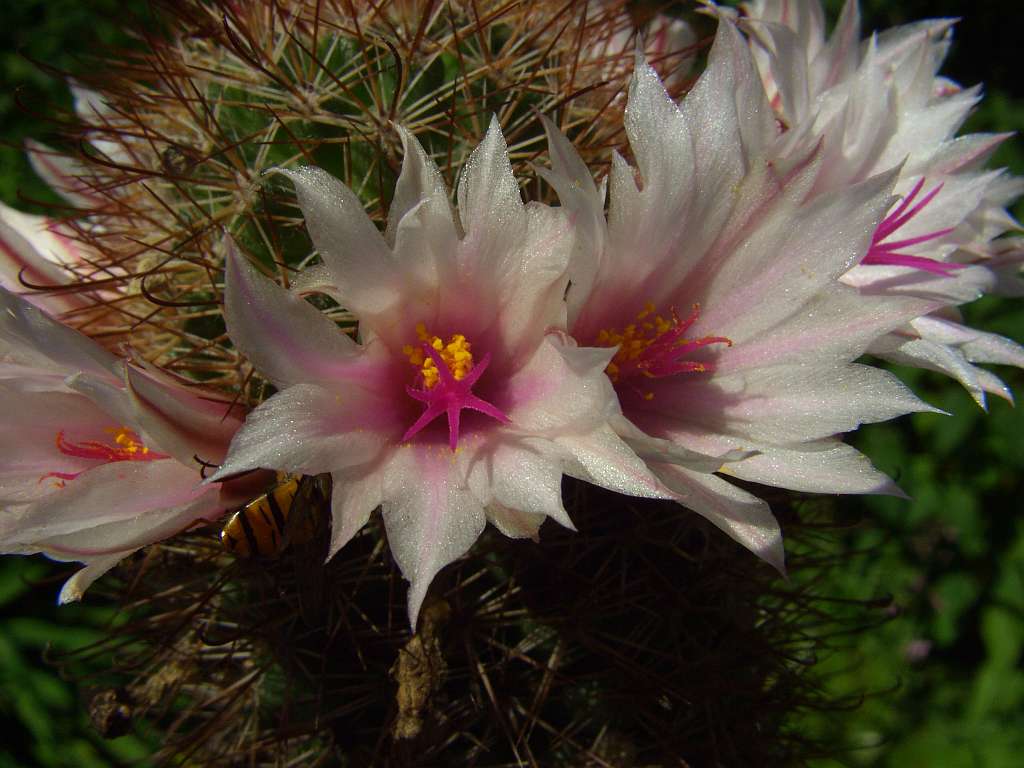 In dieser Gruppe gibt's Blüten auch in Pink - was gut gegen das dunkle Abwehrkleid dieser Form kontrastiert!