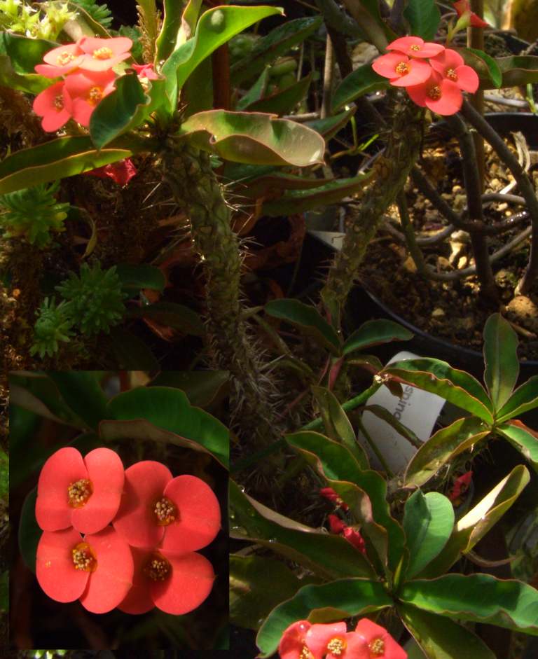 So, zum Abschluss noch ein Tip: wer wegen der hübschen Blüten gern einen Christusdorn pflegen möchte, aber etwas gegen die mit der Zeit recht spürreligen und massiv bedornten Pflanzen hat, der hole sich lieber diese kleine Form, die bei uns bisher kaum 15 cm hoch geworden ist, aber stets reichlich blüht.