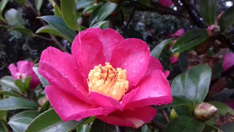 Die Kamelien freuen sich über das milde Wetter, weil sie noch draußen bleiben dürfen.