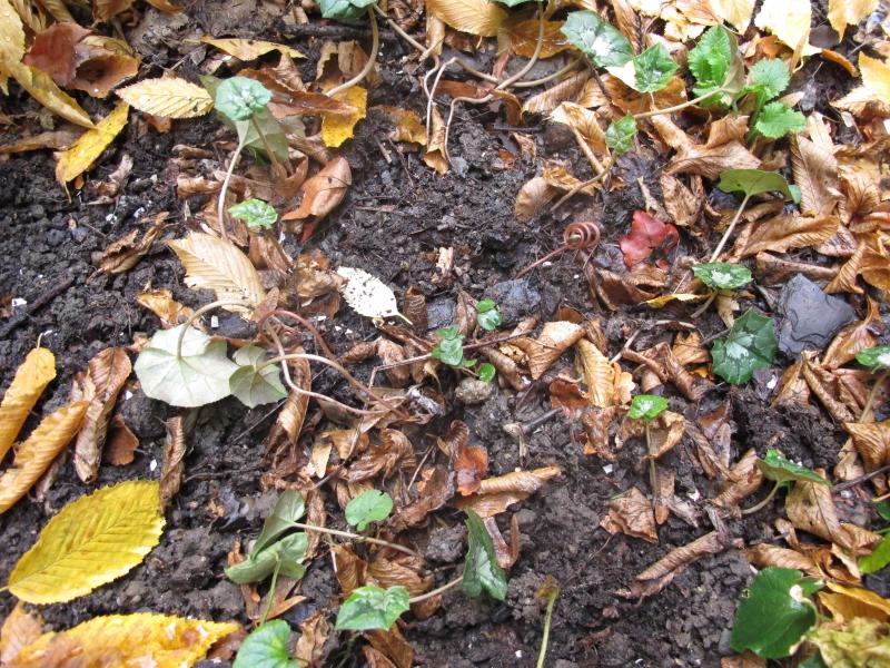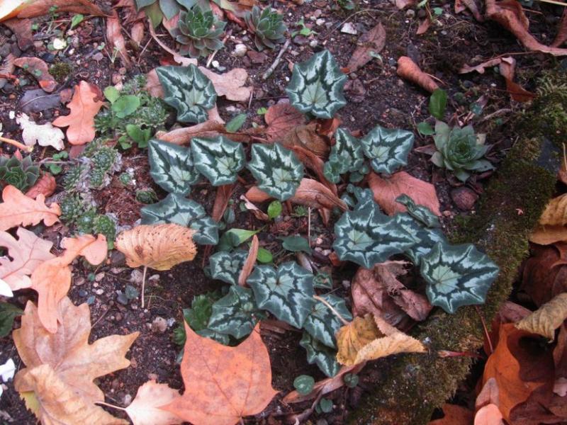 Die Erde unter dem Laubmull scharren sie nicht auf bei mir, die wäre auch zu hart, aber durch das Rupfen und Werfen des Laubmulls oder Herbstlaubes können die Cyclamen dann so zerzaust aussehen.