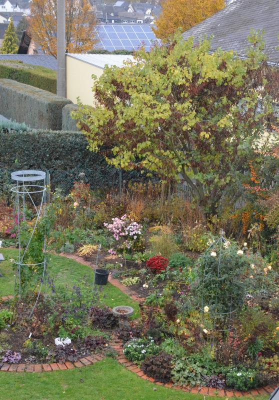 Und im Rhodobeet wird sich im Frühjahr auch noch einiges tun. 2 Kamelien sollen noch gepflanzt werden, anderes muss dann weichen. Eine Azalee ist stark eingetrocknet, die fliegt eventuell raus. Mal abwarten...