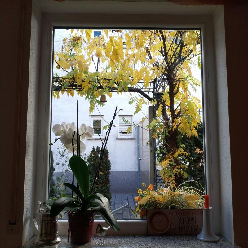 Heutiger Naturblick nach Süden aus meinem Küchenfenster in der (Innenstadt-) Stadt (von) Oldenburg.