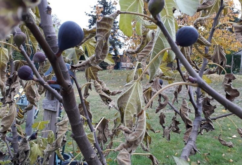 Bei dem Baum waren nach einigen kalten Nächten schon vor mehreren Tagen fast alle Blätter abgefroren, und trotzdem sind viele Feigen, die noch dran am Baum hingen, nachgereift. Habe gestern mehrere davon geerntet, sie waren nicht so süss wie im Sommer, aber immer noch süss genug und lecker.