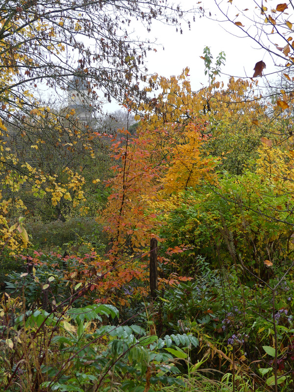 Zum Vergleich habe ich die andere färbende Sorte noch in die Nähe gesetzt; 'Orange Retz' von Minier, die allerdings im Sommer beinahe vertrocknet wäre und keinerlei Färbung hatte.