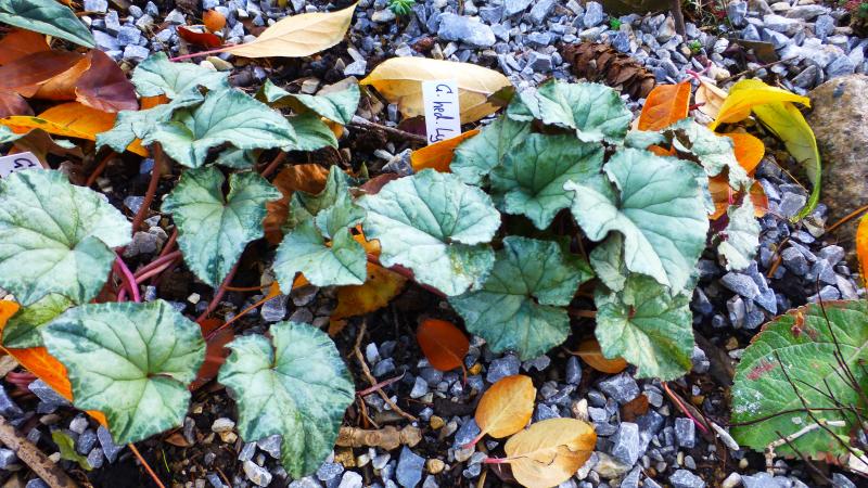 Vor ein paar Tagen schon einmal meine zwei Neuzugänge Cyclamen hederifolium lysander silver leaf im Topf gezeigt. Jetzt nach dem Regen haben sie sich gut etabliert.