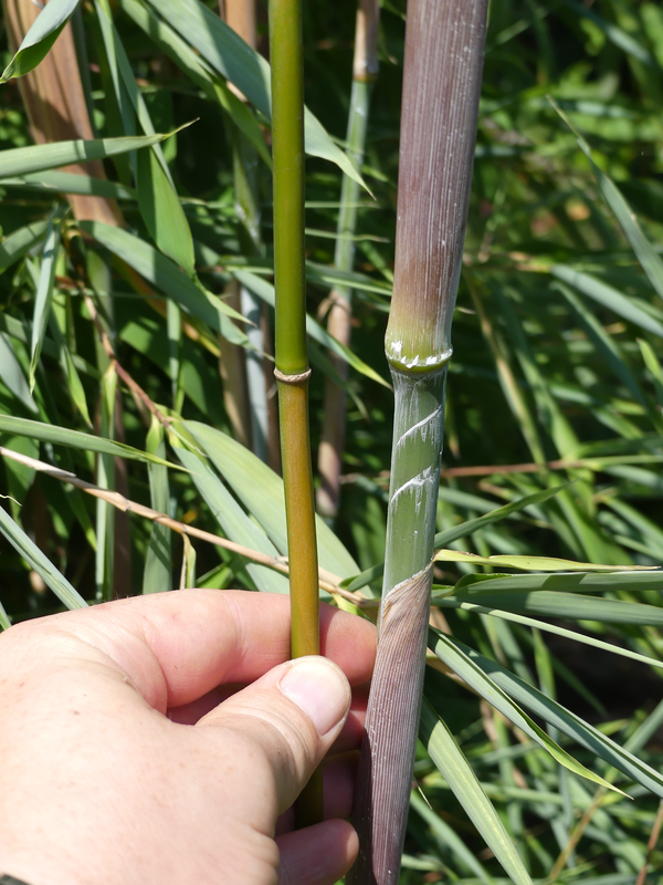 Da alles ineinander wächst, bin ich mir nicht sicher, ob es nur noch ein Klon mit altersbedingten Halmfarben oder mehrere sind.