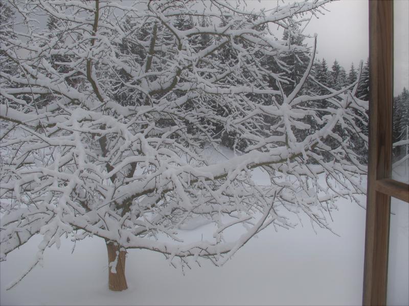 Das Laub ist großteils gefallen und meine Gartenkulisse nicht mehr blickdicht. Kalt ist es auch. :) (Blick aus dem Wohnraumfenster.)