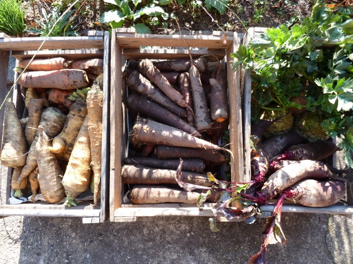 Ich habe letzte Woche geerntet; Sellerie, Randen, Karotten, Zuckerhut und Palla Rosso. :D