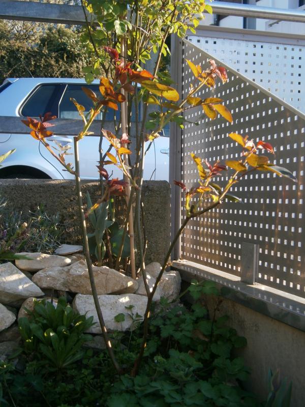 Vor kurzem habe ich meinen Gartenteich zugeschüttet und jetzt zusätzliche Pflanzplätze für Rosen bekommen. Gestern gepflanzt: Lupo und Freifrau Caroline von Kordes; White Grandma, ein weißer Sport der Rose Granny von Poulsen. Diesen Sport hat Rosen-Hammer gefunden und benannt. Eine Freundin von mir hat mehrere White Grandma auf Hochstamm und ist begeistert von der reichen Blüte.
