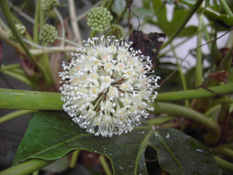 Gerade blüht meine seit Jahren ausgepflanzte Fatsia wieder. :D Es ist allerdings eine stinknormale, keine Spiders Web. Der Frostschaden von 2017 hat sich völlig ausgewachsen. 8)