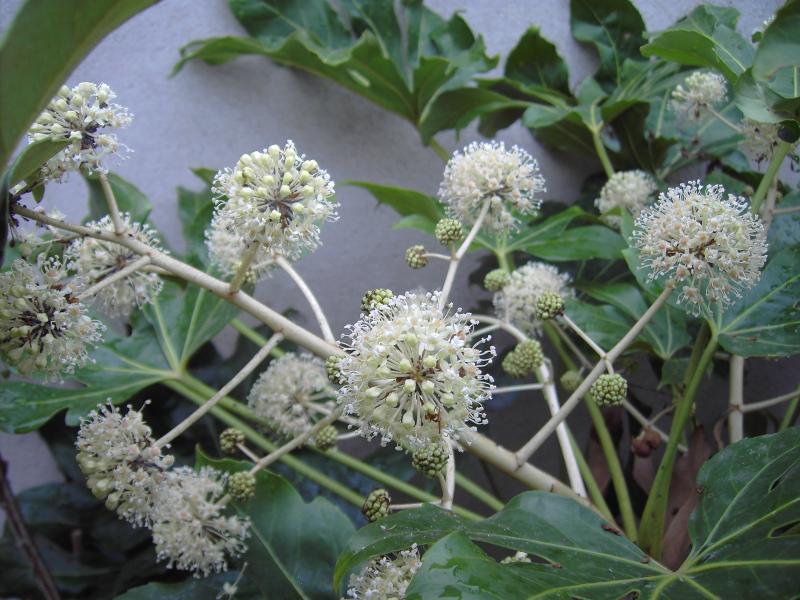 Gerade blüht meine seit Jahren ausgepflanzte Fatsia wieder. :D Es ist allerdings eine stinknormale, keine Spiders Web. Der Frostschaden von 2017 hat sich völlig ausgewachsen. 8)