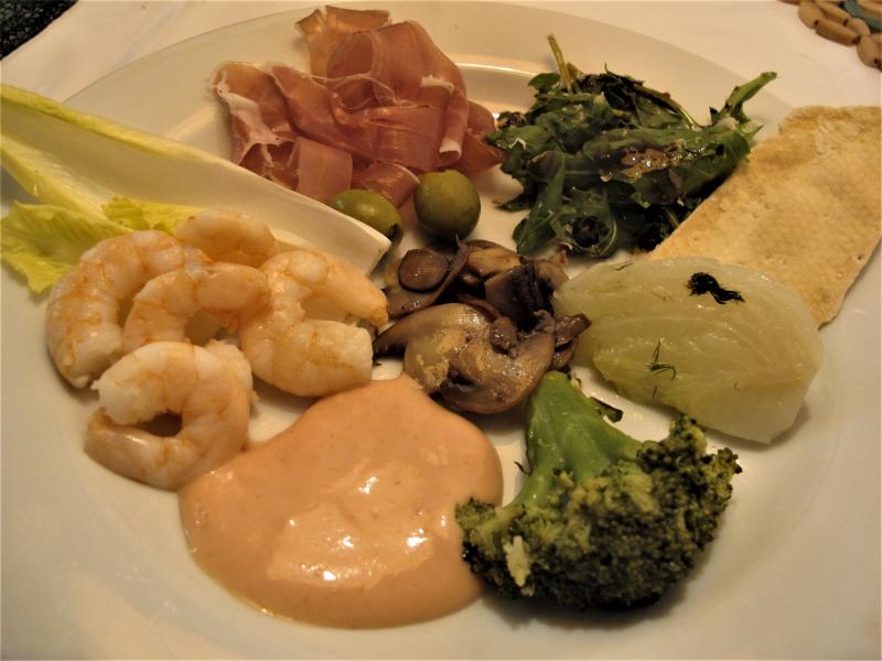 Das Buffett fand Zustimmung - es gab um einiges mehr 8), - außerdem noch italienische Salami, Mozarelle mit Tomaten und Basilikum und alten Parmesan, verschiedene Baguettes: