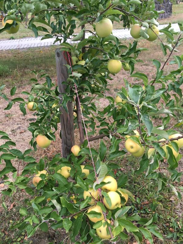 Abmerkung zum Bild: Die Äpfel war zum Zeitpunkt der Aufnahme noch nicht ganz reif, aber schaut mal wie dick (oder besser gesagt wie dünn) der Stamm noch ist und wieviele Äpfel schon dranhängen. :)