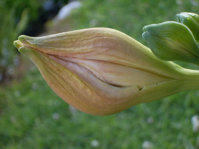 Hab am vorletzten Wochenende daheim die "Blütenkrone" von Paper Butterfly fotographiert, weil ich diese bauchige Form der kurz vor dem Erblühen stehenden Knospe so außergewöhnlich fand. Habe sowas bisher bei keiner meiner anderen Taglilien gesehen, ist das normal? Die offene Blüte habe ich dann leider verpasst *seufz*...