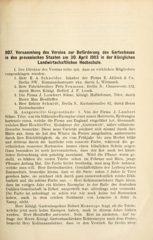 Bei der Recherche nach der der historischen Form Hydrangea hortensis var. rosea bin ich auf diesen Artikel in der Gartenflora aus dem Jahr 1907 gestoßen. Wer meinen Monologen noch folgen mag, den bitte ich besonders die Passage zu lesen, die mit "Herr de Coene..." beginnt.