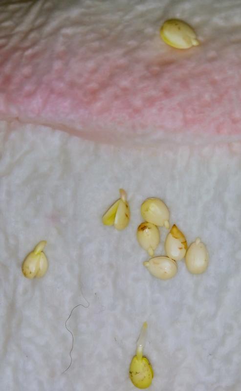 Wie angekündigt, meine Berichterstattung über die Keimung von Apfelkernen der Sorte RS-1 ohne Stratifikation.