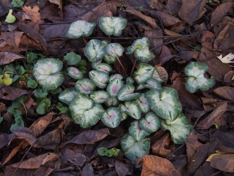 Die kühleren Temperaturen zaubern wieder eine rosa Blattmitte bei diesem Cyclamen hederifolium hervor.