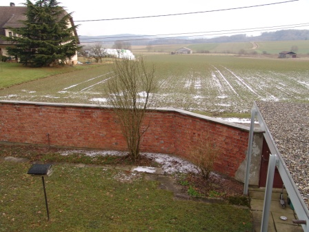 Foto, Gartenplan von 1961. Das Haus wurde 52 gebaut. Was sich 61 dann wahrscheinlich geändert hat war die Ostmauer, das war früher ein kleines Mäuerchen, heute eine hohe Mauer. Man erzählt sich, die Nonnen seien damals über das Mäuerchen gestiegen und hätten der Hausherrin das Gemüse aus dem Garten geklaut. ;) Das Haus stand früher mausallein, heute gibt es Nachbarschaft. Anfangs hatte mich die Ostmauer etwas gestört, heute bin ich froh darüber, denn sommers donnern die grossen Landmaschinen vorbei und wirbeln ziemlich Staub auf.