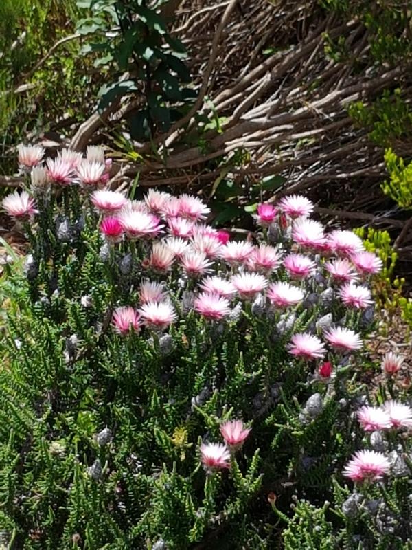 Die gibt es auch in weiss in grossen Tuffen überall in der Fynboslandschaft. Fühlt sich an wie frische Strohblumen. 8)