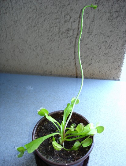 Hi Andreas wenn Du Deine Dionea in der Wohnung kultivierst wird sie einfach zu wenig Licht haben und ist darum so schlapp.Was verstehst Du unter Koniferenerde?Am besten wachsen diese Pflanzen in reinem Torf.Gruss Rene