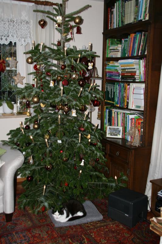 Wie gemütlich der Christbaumschnucki unterm Baum liegt. Siehste, er weiß genau wo er daheim ist.