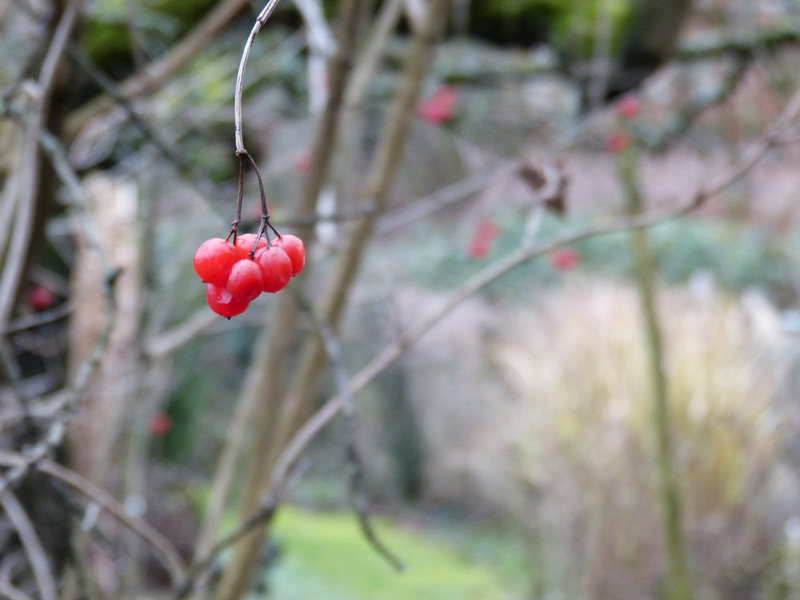 Die roten Nandinenbeeren leuchten schön vor dem alten Fenchelbestand: