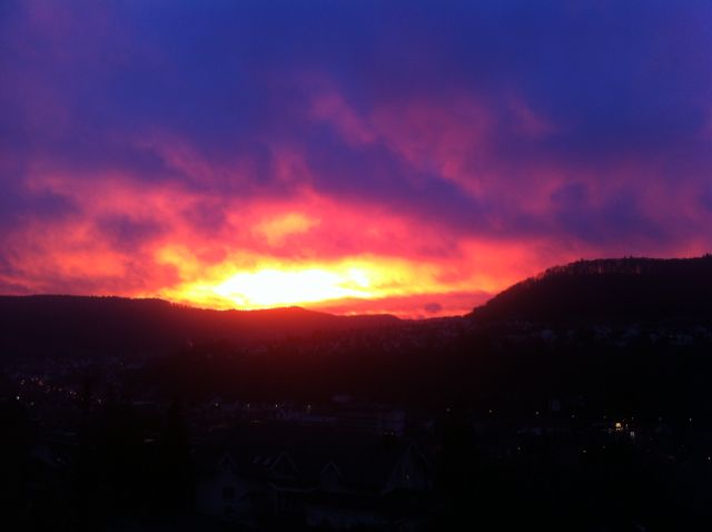 Nachdem die letzten Tage eher sonnig waren mit Temperaturen bis +5°C ( nachts bis -7°C), war es heute hochneblig trüb, und dann gab es kurz vor 17 Uhr dieses Schauspiel für knappe 10 Minuten :