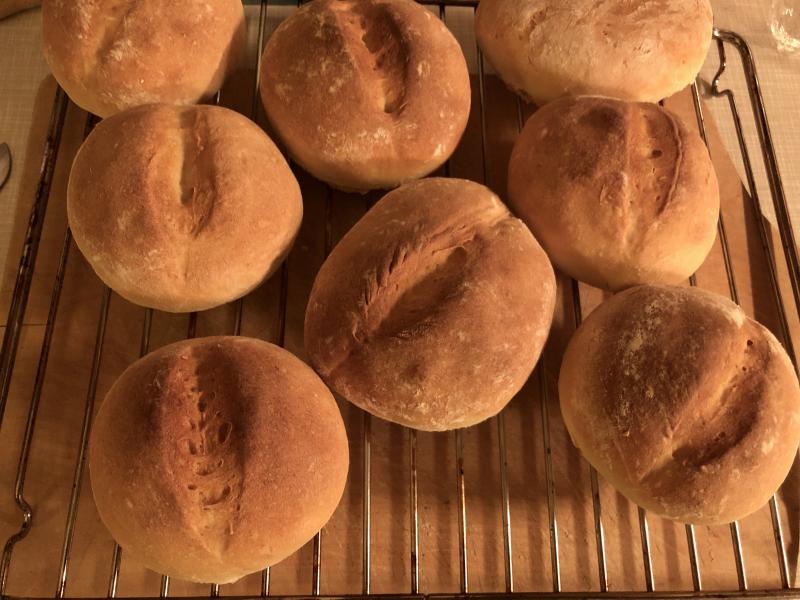 gebastelt. Es sollten 6 Kaisersemmeln mit Sauerteig werden und einem Fertig-