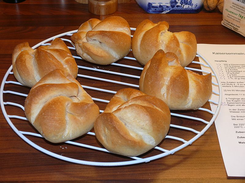 gebastelt. Es sollten 6 Kaisersemmeln mit Sauerteig werden und einem Fertig-
