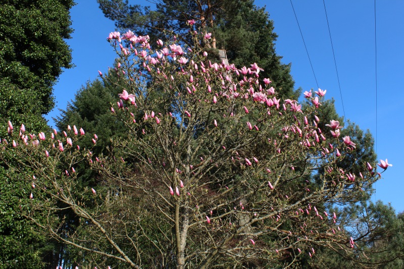 Gerade rief ein Nachbar unseres Gartens im vorderen Bayrischen Wald an, die Feuerwehr hätte unsere gesunde 20 m hohe Waldkiefer oben abgeschnitten, da sie sich wegen des Schnees über die Strasse bog und ein anderer Nachbar sie gerufen hatte.