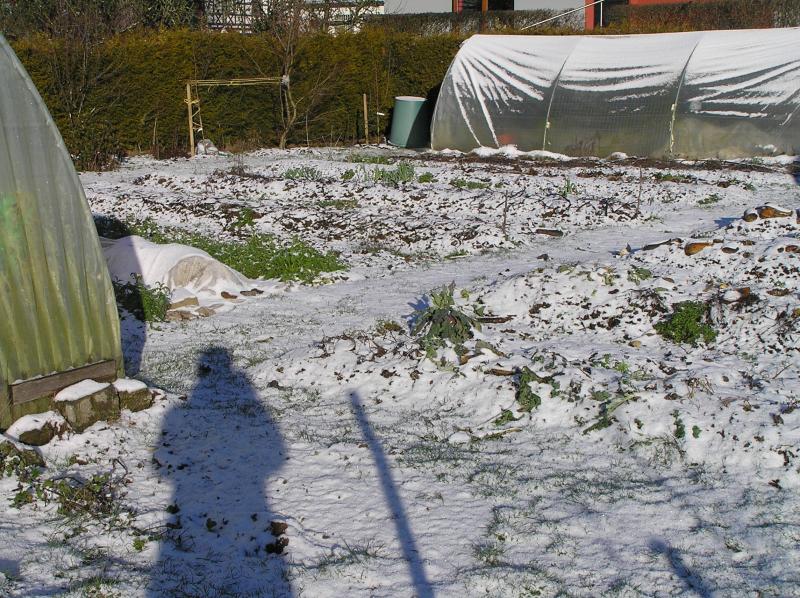 Endlich, nach zwei Wochen Regen, trüb, dunkelgrau, wieder blauer Himmel und Sonne. 0° C
