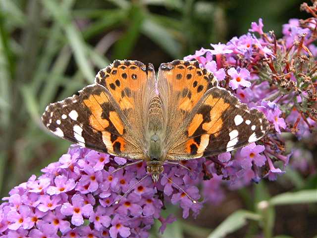 schöner schmetterling, faulpelz! es ist ein distelfalter. dieses jahr hab ich noch keinen fotografieren können, aber hier einer von letztem jahr!gruss leni wIst es ein kleiner Fuchs?