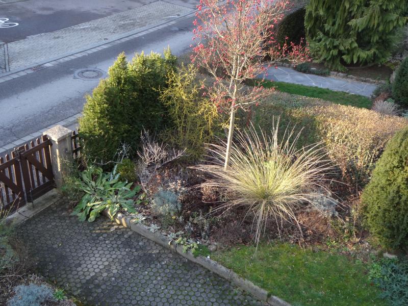 Auch hier sind noch die Früchte v. Apfeldorn am Baum: entweder haben wir heuer deutlich weniger Vögel, insbesondere Amseln oder es ist einfach hier noch nicht kalt genug gewesen und die Vögel finden noch im nicht zugeschneiten Wald genug Futter und kommen später...