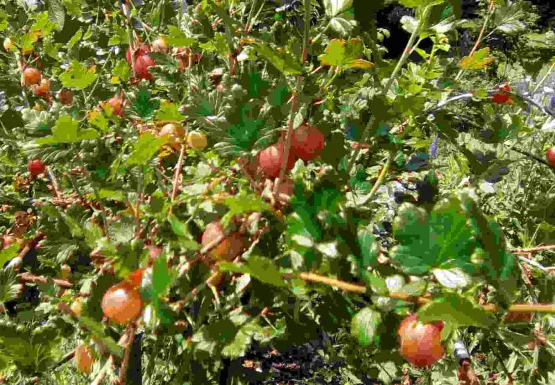 In einem Garten sah ich eine tolle großfrüchtige ovale Stachelbeere die leicht behaart war, die Farbe war sehr unterschiedlich, von gelbrot, grünorange gab es alle Schattierungen aber überwiegend schimmerte die Frucht aprikot-orange.