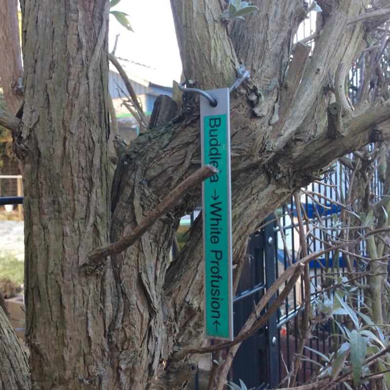 Ich selbst verwende Schlaufenetiketten, mit Blei von Hand beschriftet und auf eine Latte getackert. Hält zwar nicht jahrzehntlang und ab und zu fällt eine um, bekomme aber die Etiketten und gelegentlich auch das Holz als "Verschnitt" für so gut wie nix, eigentlich umsonst.