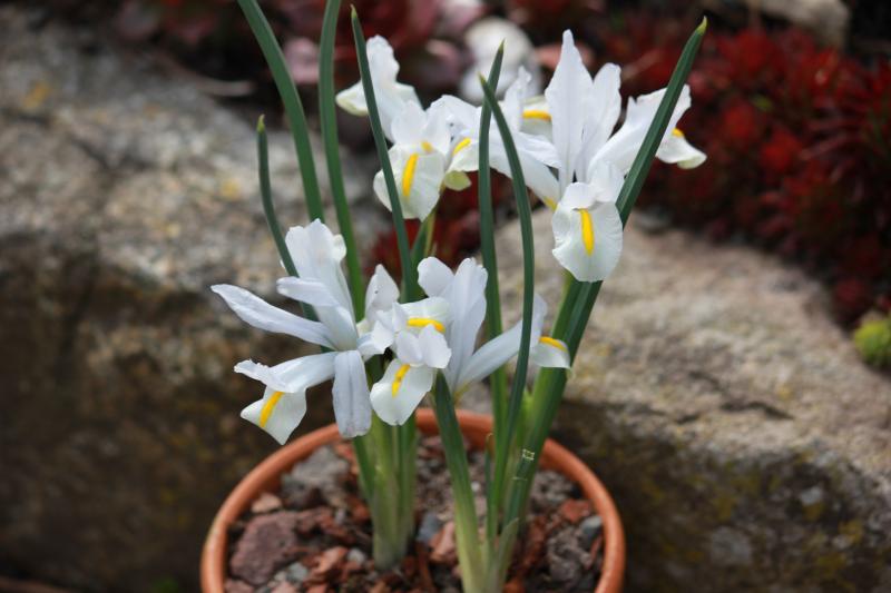 Hier tut sich in den Beeten auch noch nicht viel beim Austrieb von Iris reticulata. Auf die neuen Sorten von Alan McMurtrie bin ich sehr gespannt. Ob sie überhaupt den Winter überlebt haben? Die Sorte 'White Caucasus', hier noch getopft, gefiel mir besonders gut. Da ich alle Sorten nach der Blüte ausnahmslos ausgepflanzt habe, kommen nun schon so langsam leise Zweifel, ob das wohl eine gute Idee war.