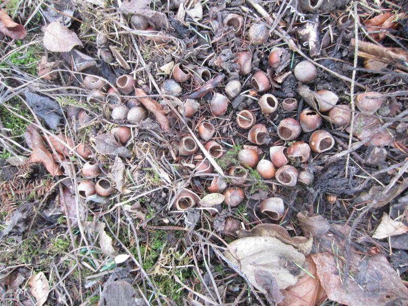 Ungefähr 10 Meter vom nächsten Haselnussstrauch entfernt fand ich heute das. Wer hat da wohl geschlemmt?