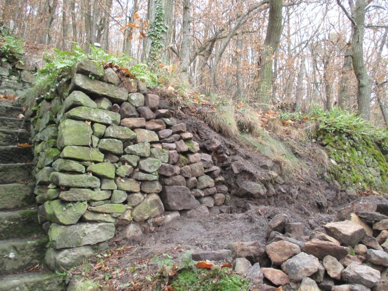 Diese gerutschten Mauen baue ich nach und nach wieder auf. Wie diese hier: