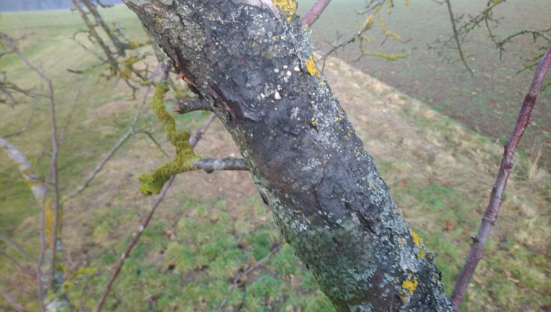 Er sagte es wäre eine typische Streuobstkrankheit, man kanns mit weisseln versuchen, zugelassene Präparate, keine Wandfarbe wie hier leider oft üblich ist. Konkrete Mittel dagegen gibts wegen fehlender Zulassung keine. Zu einem Bäumchen mit 2 Befallsstellen an einem Ast riet er den Ast wegzusägen, stirbt eh ab über die nächsten Jahre, es war nur ein Drittel vom Querschnitt betroffen. Das passte dem Besitzer garnicht, es war der Baum des gefühlten heimlichen Stars, er hatte die Stelle garnicht auf dem Schirm, konnte es nicht recht glauben dass mit seinem Baum was nicht stimmt. Das Bewusstsein für diese Krankheit ist gering und dementsprechend wird auch wenig bis nix dagegen gemacht, dementsprechend hoch ist der Befallsdruck hier.