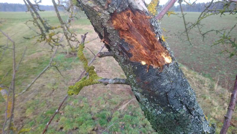 Damals allerdings, im Juni 17, waren die Schäden -zumindest die mir bekannten- besonders an Birnen zu sehen, noch selten am Apfel. Jetzt, aktuell nach dem Wüstensommer `18, fangen hier die Äpfel an zu kränkeln und zu sterben.