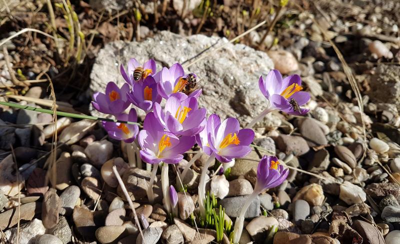 Wunderschön! Ich konnte die (leider nicht allzu zahlreichen) Sonnenstrahlen nicht genießen, es stand haufenweise Arbeit an, aber eine Handvoll Winterlinge leuteten unter meiner Weigelie hervor. Die stehen da seit zwei Jahren, ich bin mal gespannt, wie sie sich entwickeln, gebuddelt wird da nicht. Die erste Iris reticulata öffnete heute ebenfalls ihre Blüte, und die Krokusse haben in Rekordzeit viele gelbe Knospen geschoben. Hoffentlich gibt's in den nächsten Tagen ein bisschen Sonne! :)