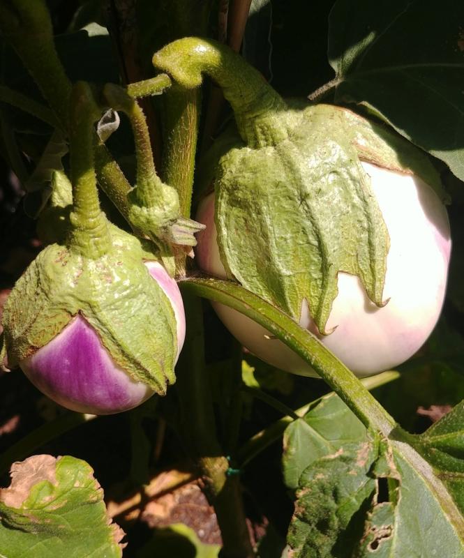 hatte jahrelang winzige ovale, gestreifte Auverginen an 2 1/2 bis 3m hohen Pflanzen,
