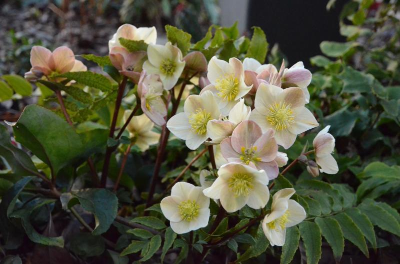 Eine Helleborushybride vom Grünmarkt, blüht schön und hat in 3 Jahren schon einen schönen Horst gebildet.